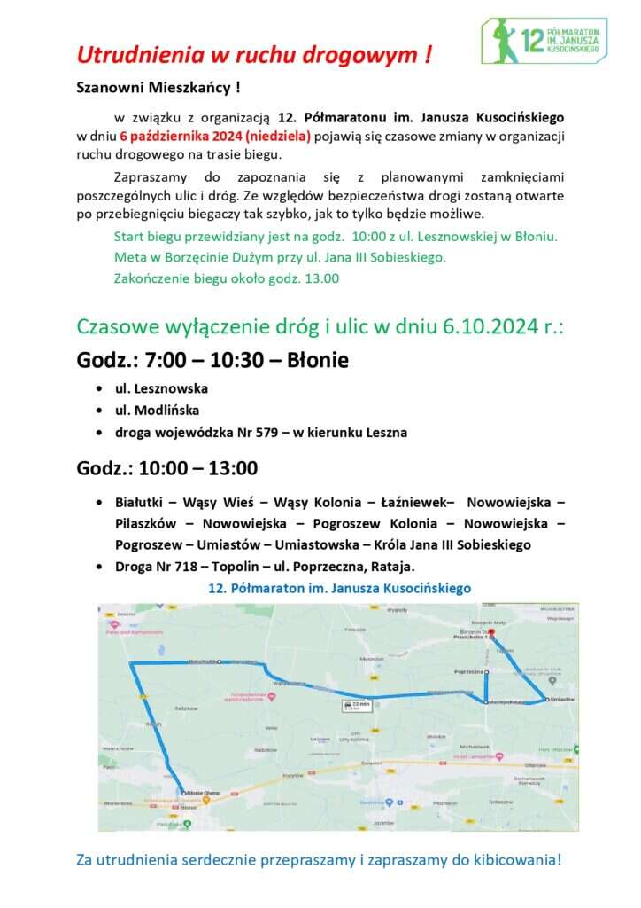 12. Półmaraton im. Janusza Kusocińskiego – zmiany w organizacji ruchu drogowego