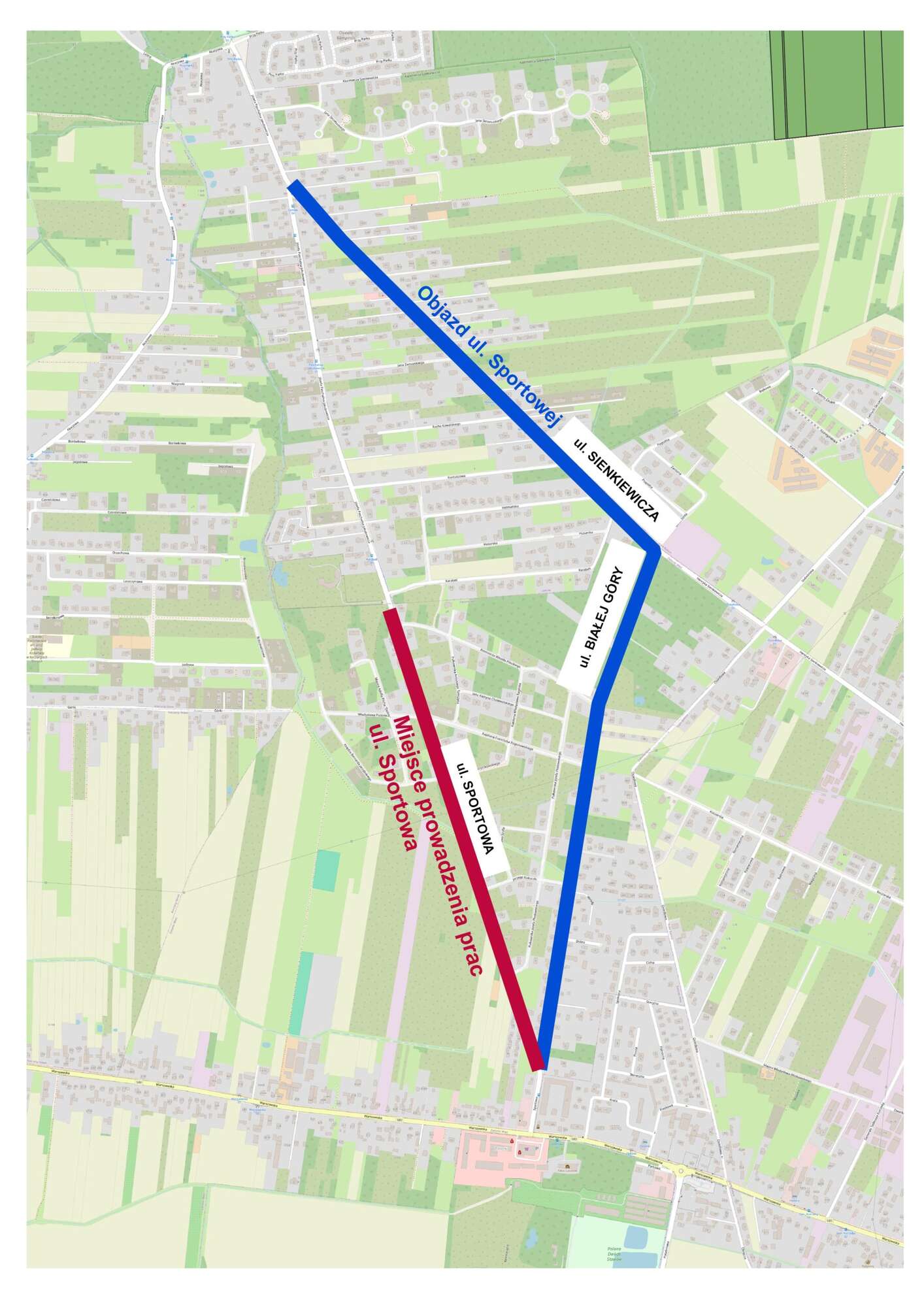 W ramach planowanych prac asfaltowych i zamknięciu ruchu na ul. Sportowej wyznaczony jest objazd pojazdów komunikacji lokalnej i ZTM ul. Białej Góry.