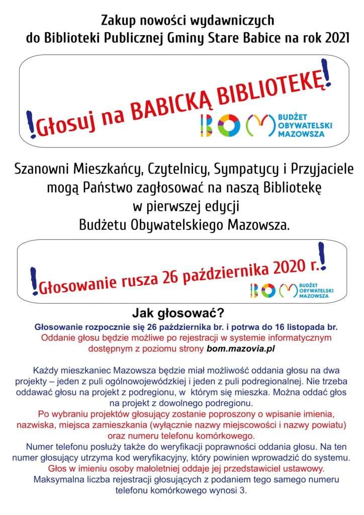 Budżet Obywatelski Mazowsza – projekt Biblioteki Publicznej Gminy Stare Babice
