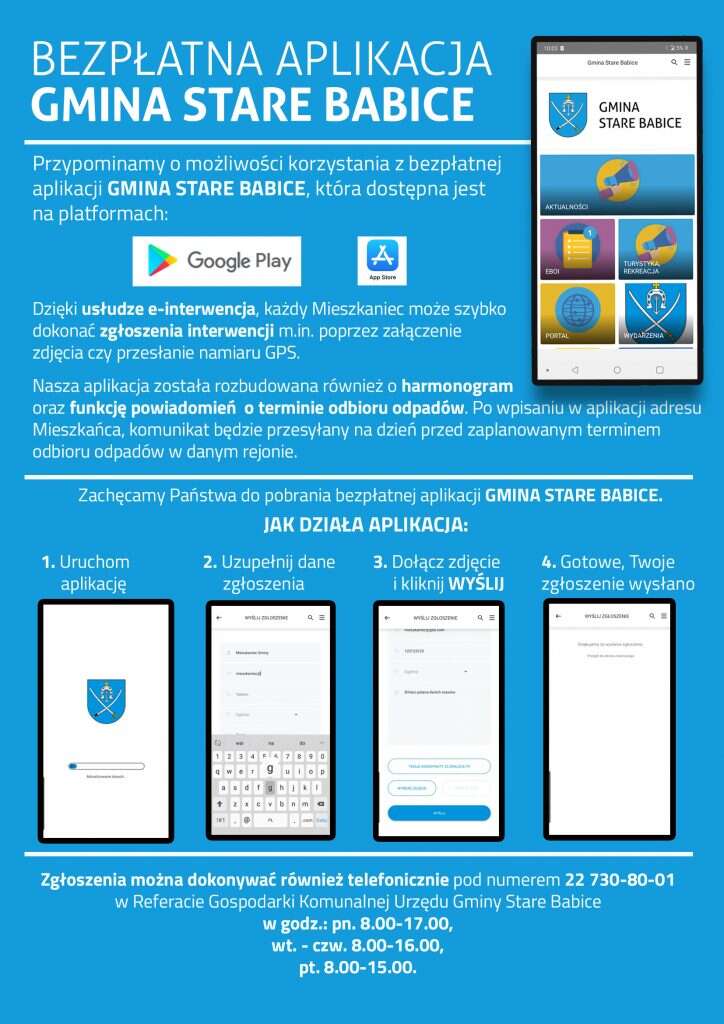 Zachęcamy do pobrania darmowej aplikacji GMINA STARE BABICE, dostępnej na platformach Google Play oraz App Store