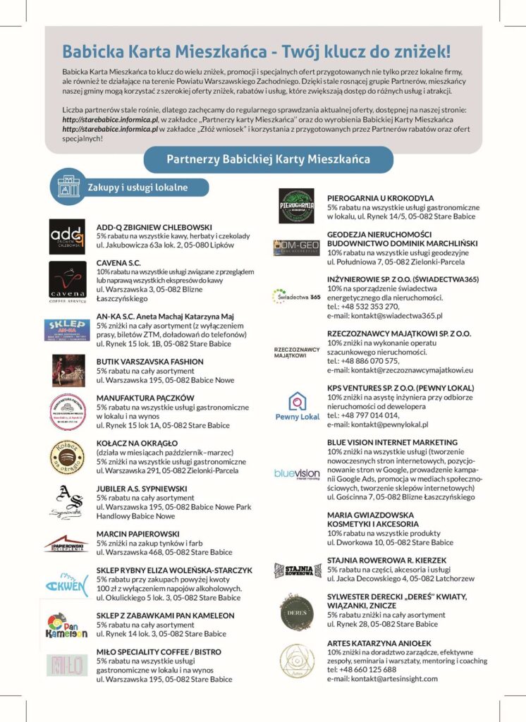 PARTNERZY BABICKIEJ KARTY MIESZKAŃCA