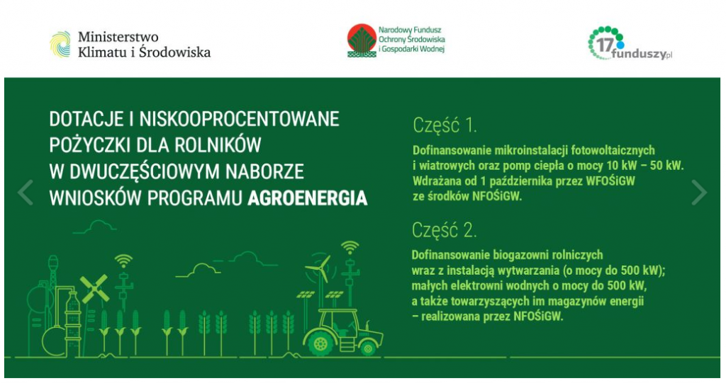 Więcej szczegółów znajduje sie na stronie: https://wfosigw.pl/dotacje-i-niskooprocentowane-pozyczki-dostepne-dla-rolnikow-w-nowym-dwuczesciowym-naborze-wnioskow-programu-agroenergia/