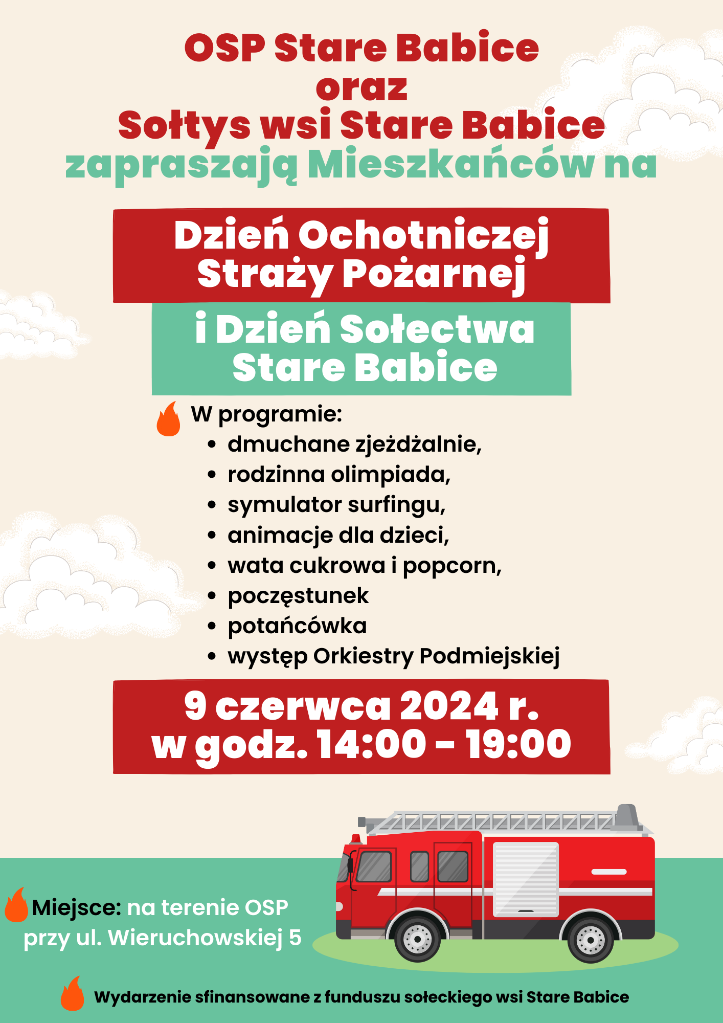 Dzień Sołectwa Stare Babice i Dzień Ochotniczej Straży Pożarnej już w najbliższą niedzielę 9 czerwca br. w godzinach 14:00 – 19:00.