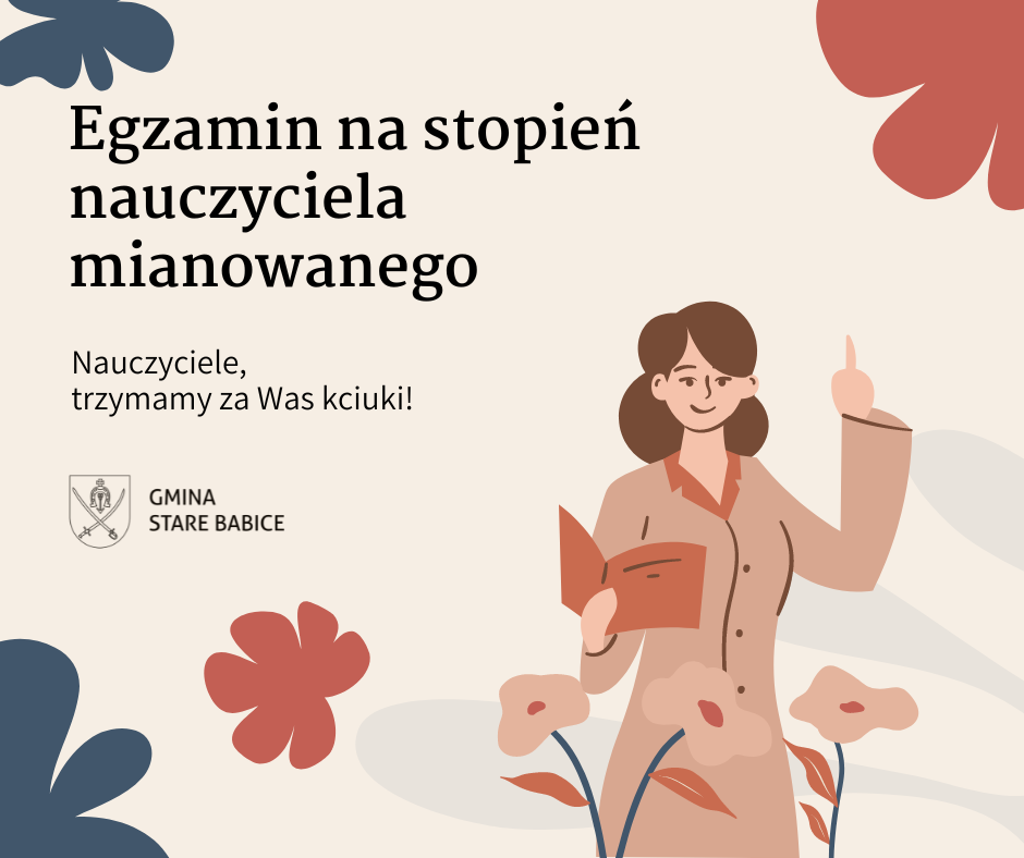 🌸Dnia 31 lipca i 1 sierpnia 2024 r. nauczyciele ze szkół gminy Stare Babice przystępują do egzaminu na stopień nauczyciela mianowanego przed komisją egzaminacyjną w Urzędzie Gminy Stare Babice.