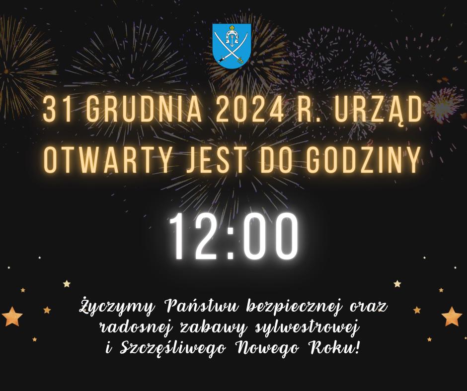 👉Informujemy – 31 grudnia 2024 r. Urząd Gminy będzie dla Państwa czynny do godziny 12:00