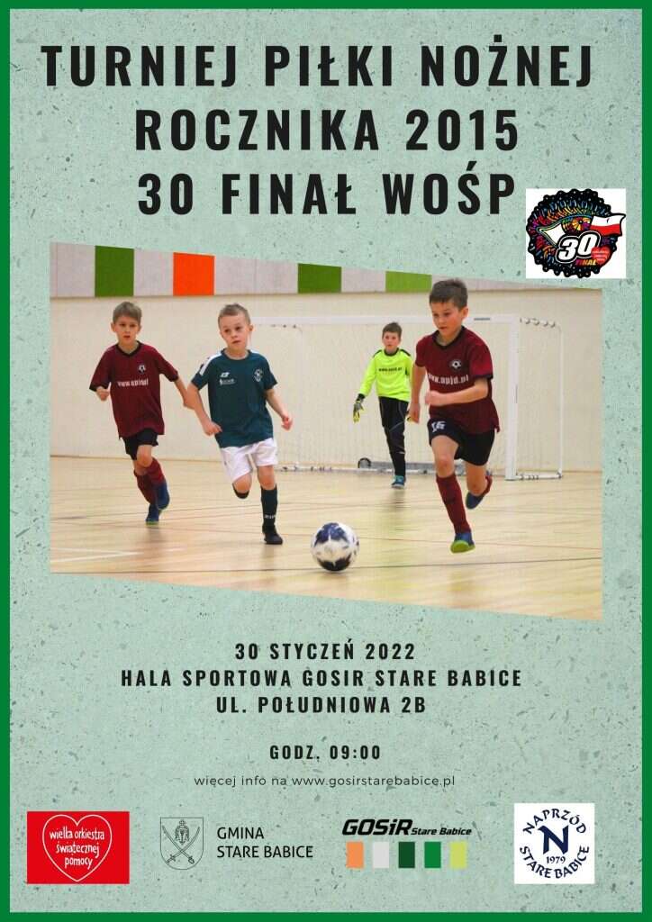 Gminny Ośrodek Sportu i Rekreacji Stare Babice oraz GKS Naprzód Stare Babice zapraszają na halowy turniej piłki nożnej rocznika 2015, w ramach 30 Finału Wielkiej Orkiestry Świątecznej Pomocy.