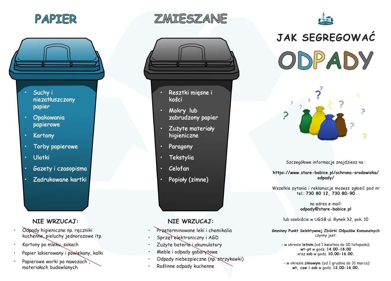 Prezentujemy Państwu ulotkę edukacyjną „Jak segregować odpady?” stworzoną przez Referat Ochrony Środowiska Urzędu Gminy Stare Babice.