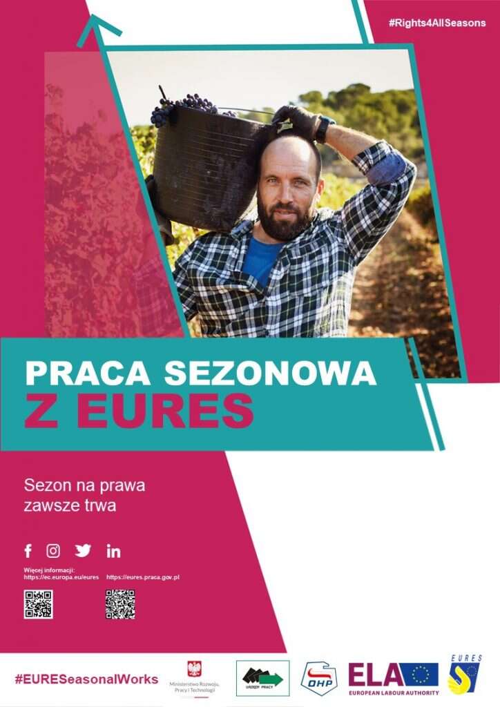 Europejska Sieć Służb Zatrudnienia – EURES prowadzi kampanię informacyjną nt. pracy sezonowej w UE, której celem jest podniesienie świadomości wśród osób poszukujących pracy i pracodawców na temat ich praw, obowiązków i możliwości. Polska kampania skierowana jest do pracowników sezonowych zatrudnionych w UE głównie w branży rolno-spożywczej.