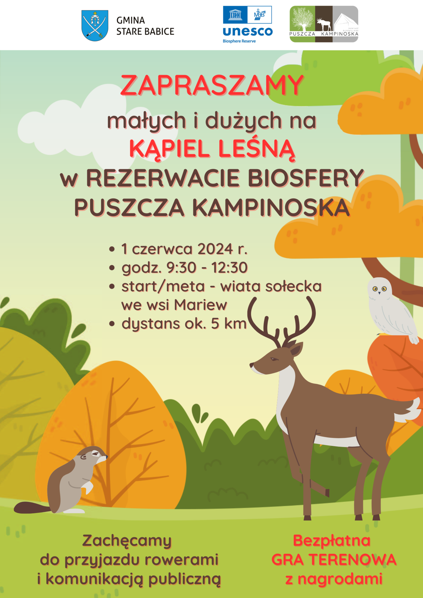 W ramach obchodów Dni Regionu Puszczy Kampinoskiej, Urząd Gminy Stare Babice zaprasza na Kąpiel Leśną w Rezerwacie Biosfery Puszcza Kampinoska, organizowaną w formie gry terenowej dla małych i dużych.