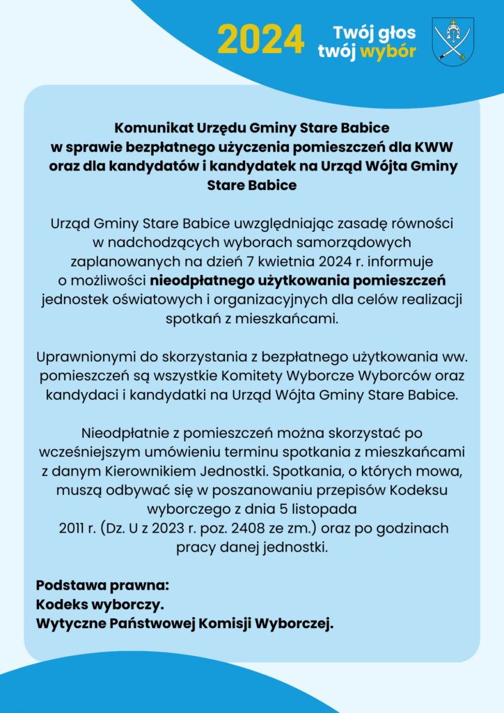 prosimy o zapoznanie się z poniższym komunikatem dotyczącym nieodpłatnego użytkowania pomieszczeń jednostek oświatowych i organizacyjnych dla celów realizacji spotkań z mieszkańcami.