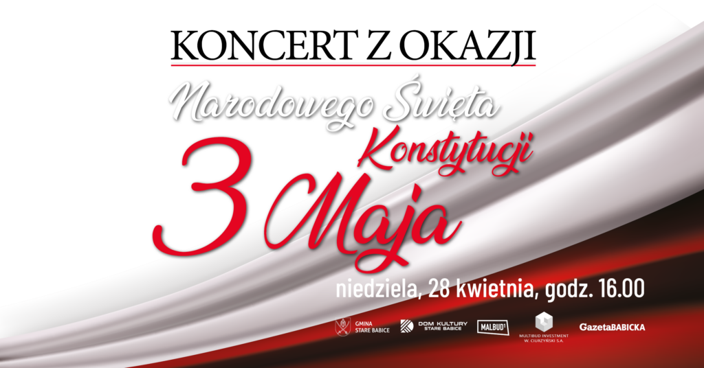 Sławomir Sumka – Wójt Gminy Stare Babice oraz Janusz Czaja – Dyrektor Domu Kultury Stare Babice zapraszają na uroczysty koncert z okazji Narodowego Święta Konstytucji 3 Maja
