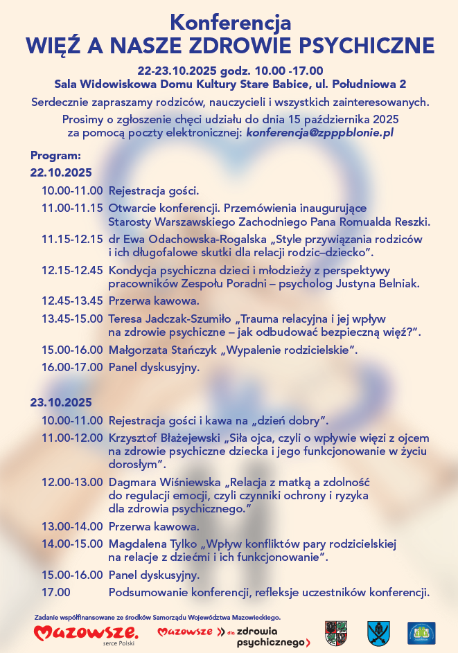 📩 Zgłoszenia uczestnictwa proszą przesyłać do 15 października 2025 r. na adres e-mail: konferencja@zpppblonie.pl