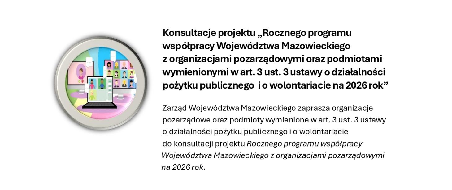 Konsultacje projektu „Rocznego programu współpracy Województwa Mazowieckiego z organizacjami pozarządowymi oraz podmiotami wymienionymi w art. 3 ust. 3 ustawy o działalności pożytku publicznego  i o wolontariacie na 2026 rok