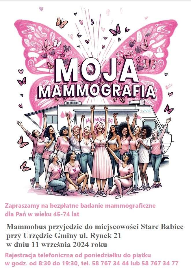 Bezpłatne badania mammograficzne dla Pań w wieku 45-74 lat. Mammobus przyjedzie 11 września br. pod Urząd Gminy Stare Babice przy ul. Rynek 21.