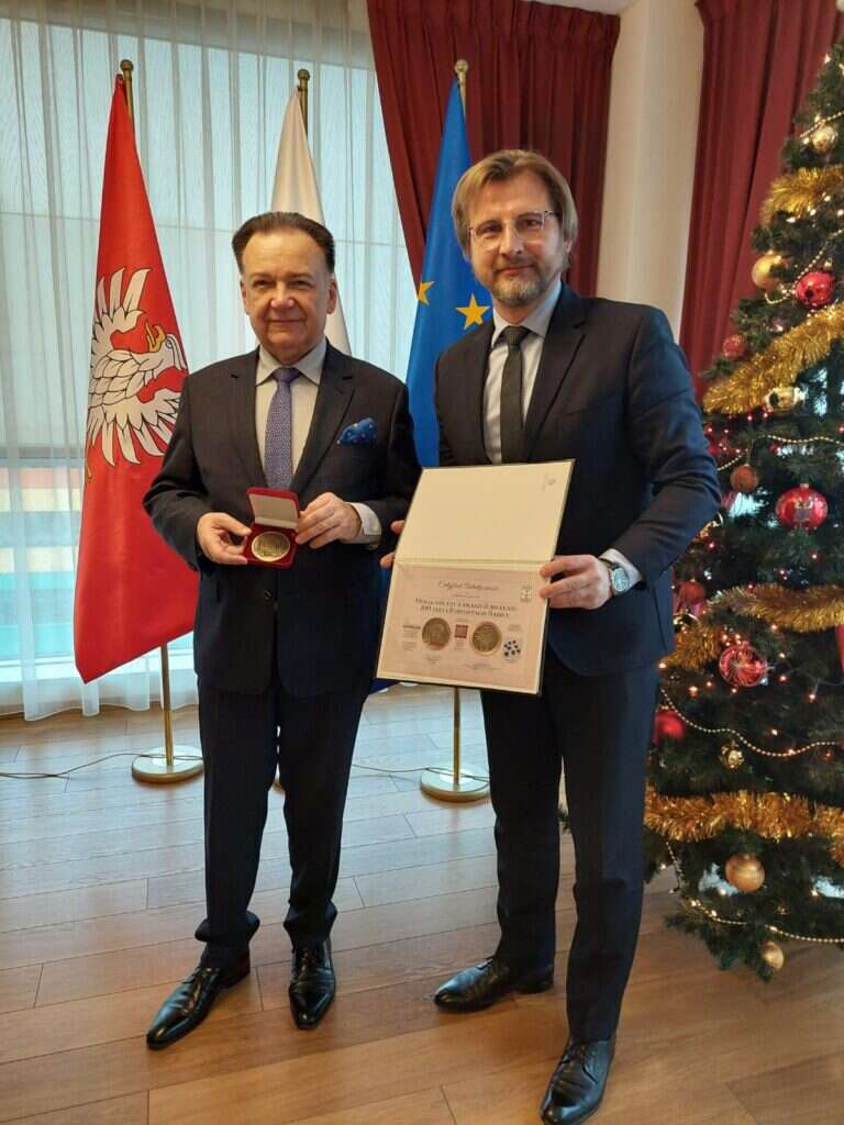 Medal z numerem 1/100 został wczoraj uroczyście wręczony przez Sławomira Sumkę Panu Marszałkowi Adamowi Struzikowi.