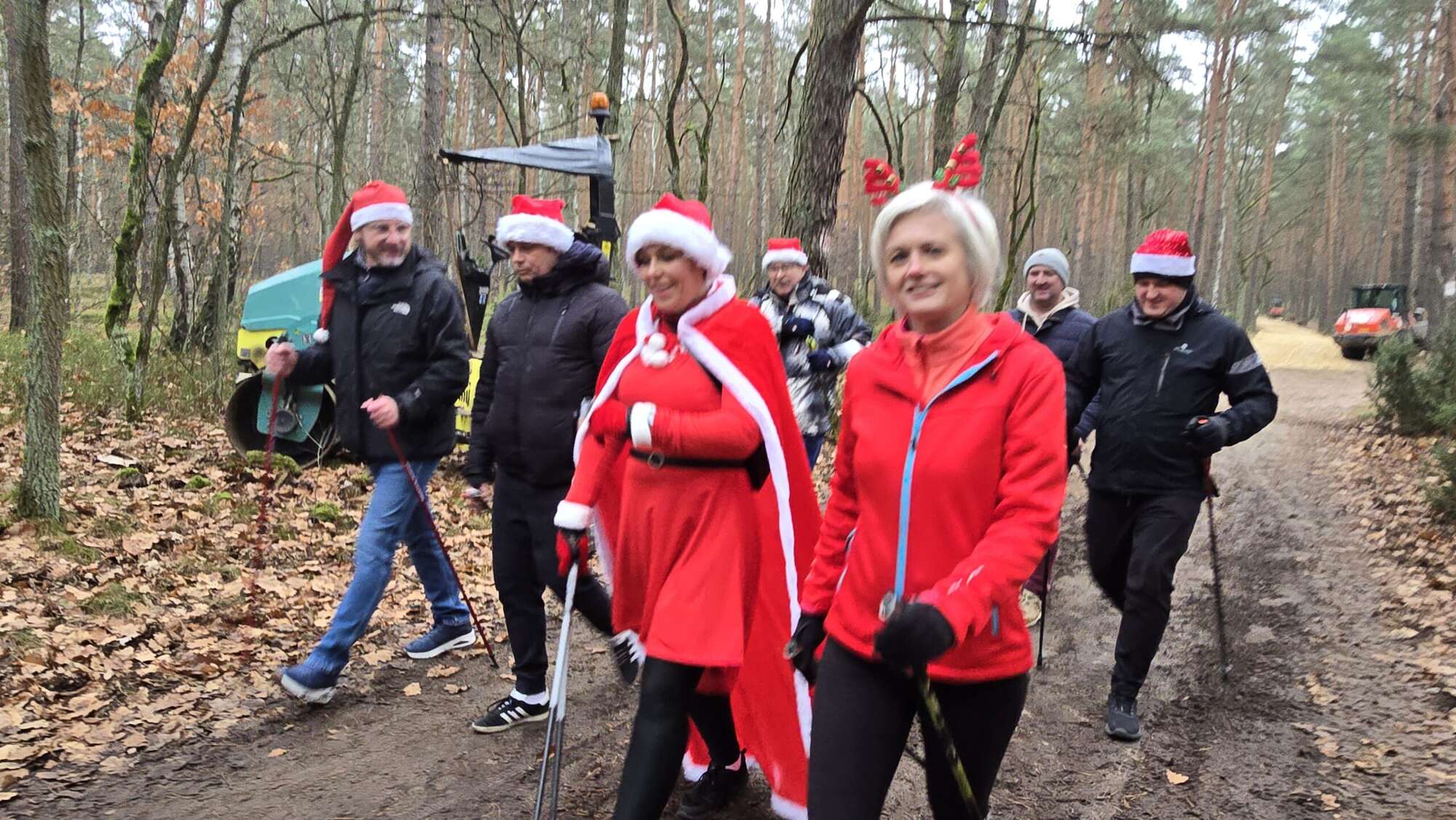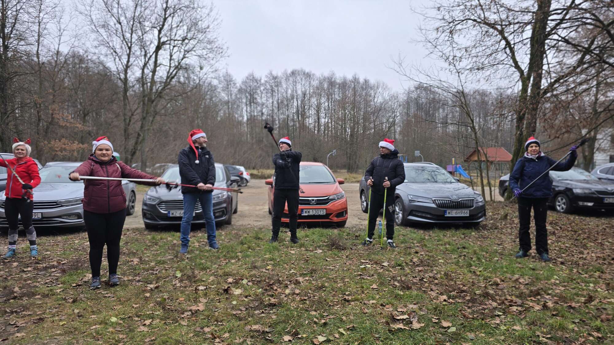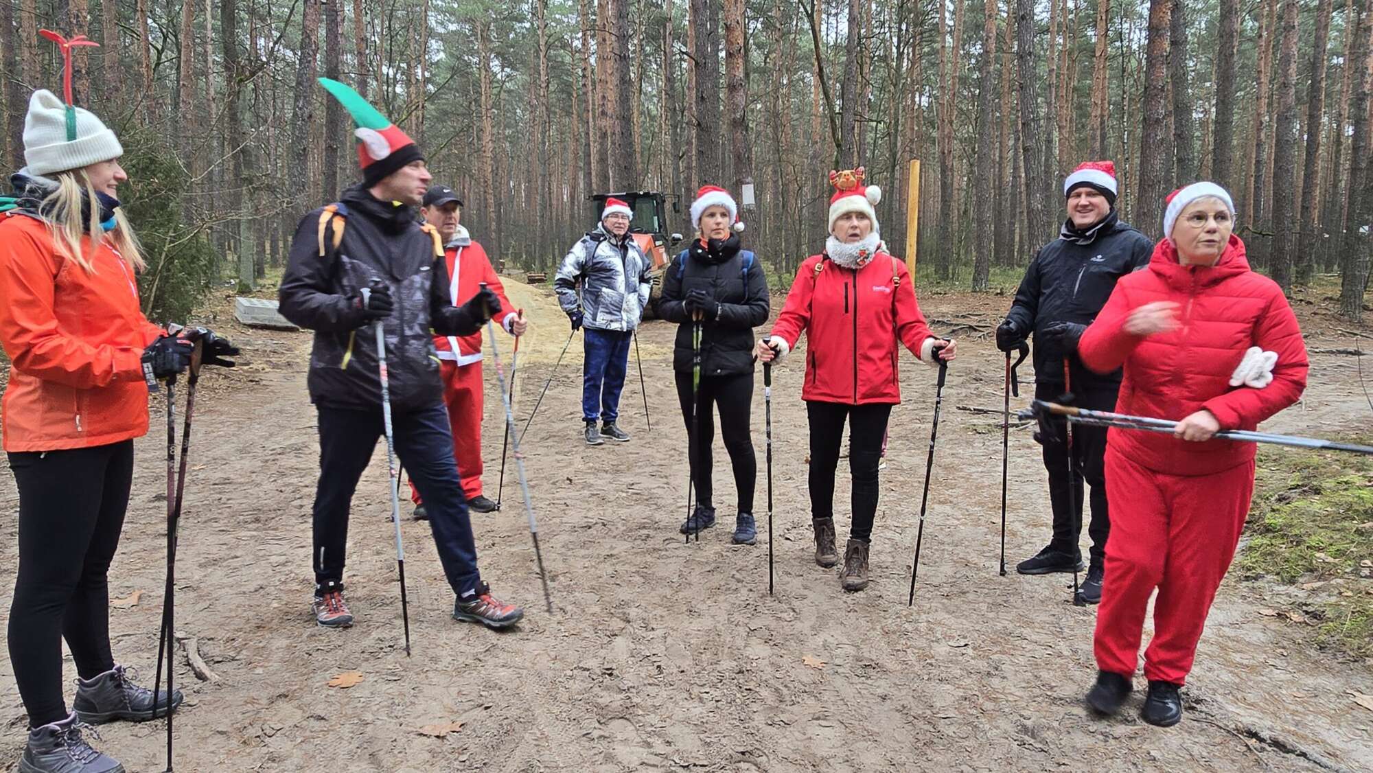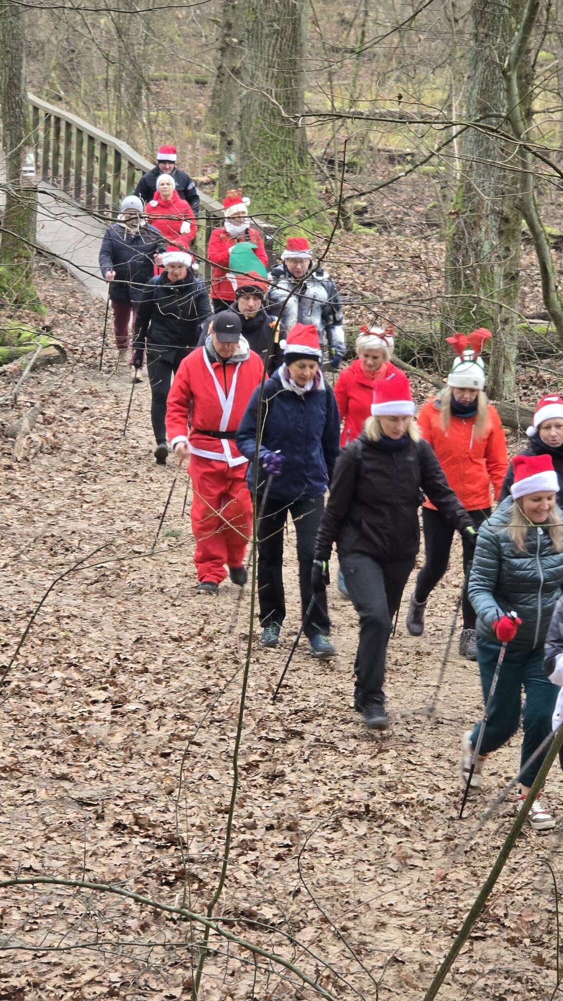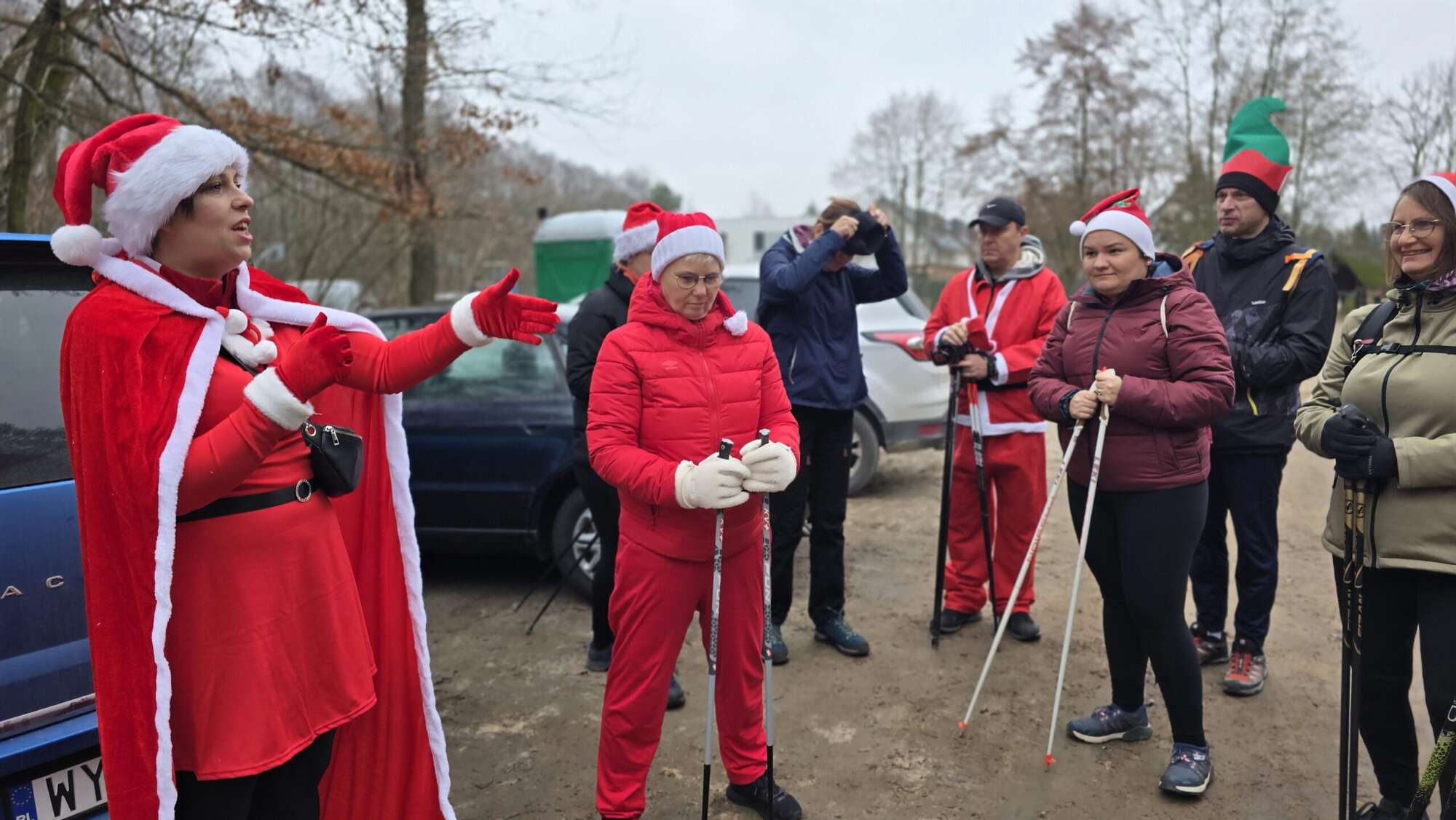 Pomimo chłodnego poranka, w Truskawiu na polanie zjawiła się fantastyczna grupa entuzjastów aktywności na świeżym powietrzu. Wszyscy uczestnicy, z kijkami w rękach i uśmiechami na twarzach, przywdziali obowiązkowe czapki Mikołaja, by dodać marszowi jeszcze więcej magii!