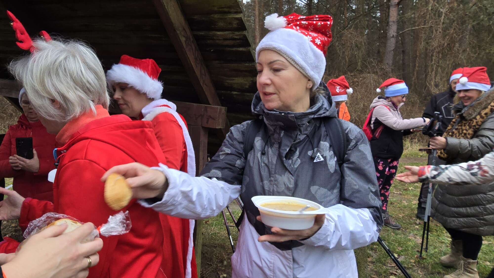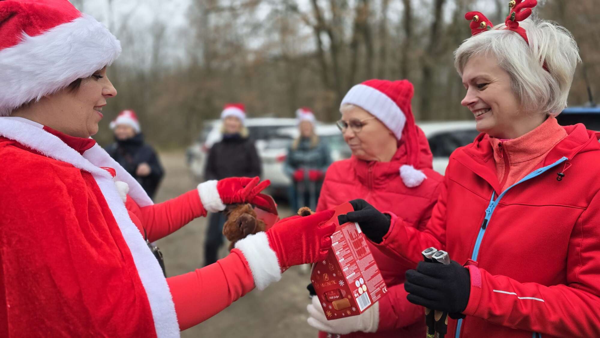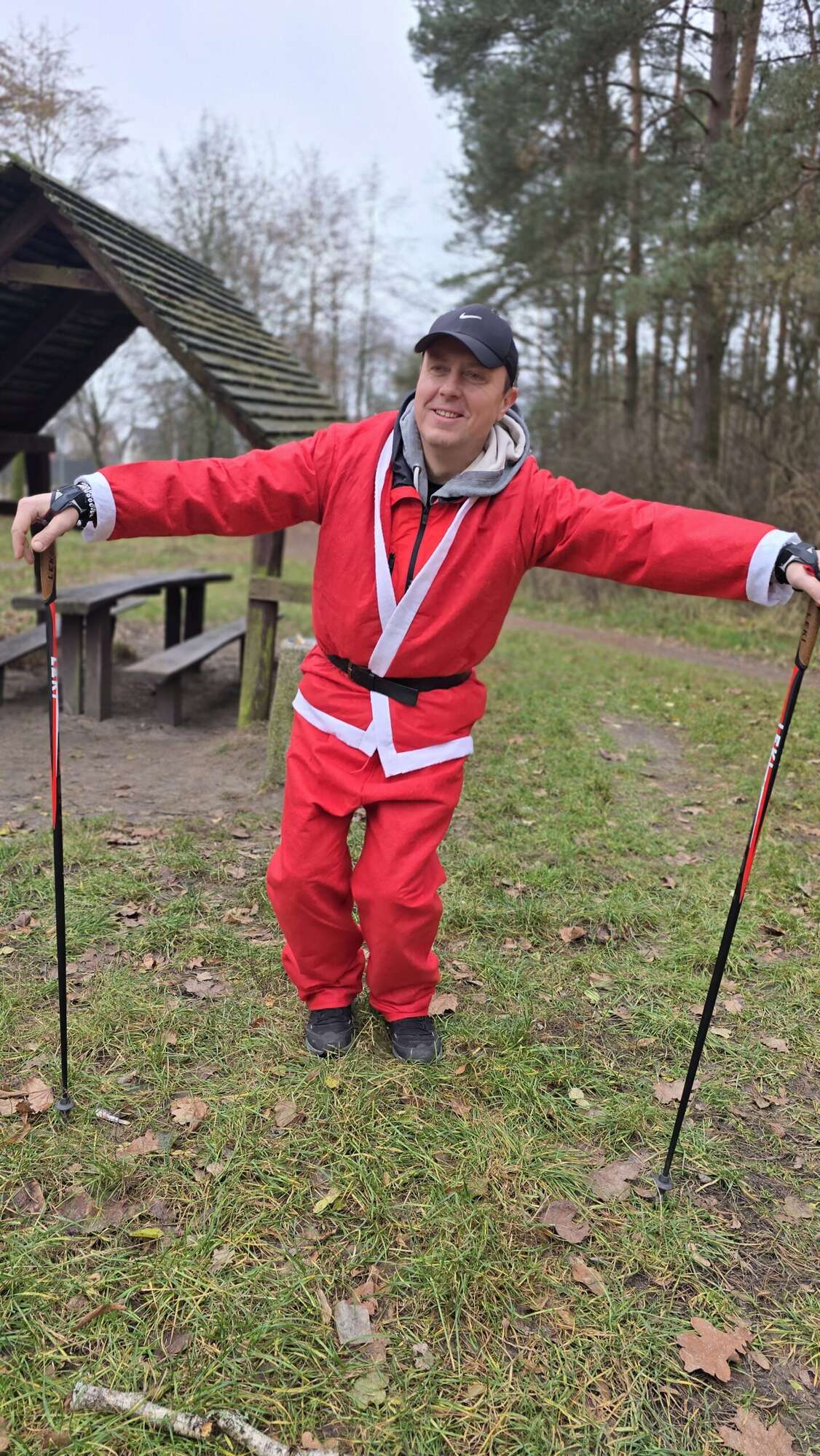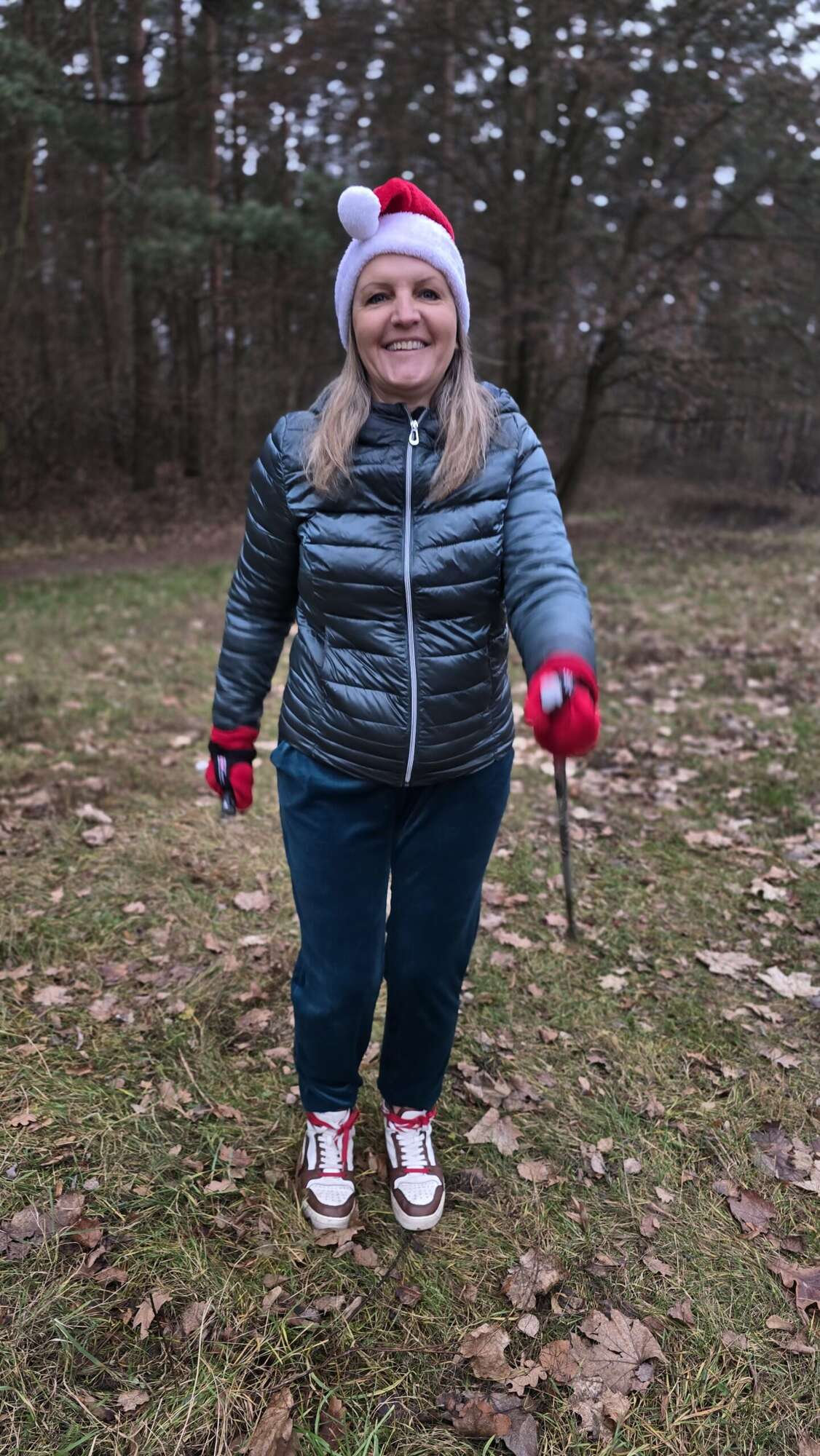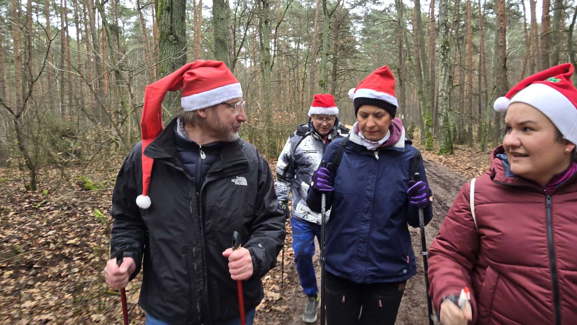 Pomimo chłodnego poranka, w Truskawiu na polanie zjawiła się fantastyczna grupa entuzjastów aktywności na świeżym powietrzu. Wszyscy uczestnicy, z kijkami w rękach i uśmiechami na twarzach, przywdziali obowiązkowe czapki Mikołaja, by dodać marszowi jeszcze więcej magii!
