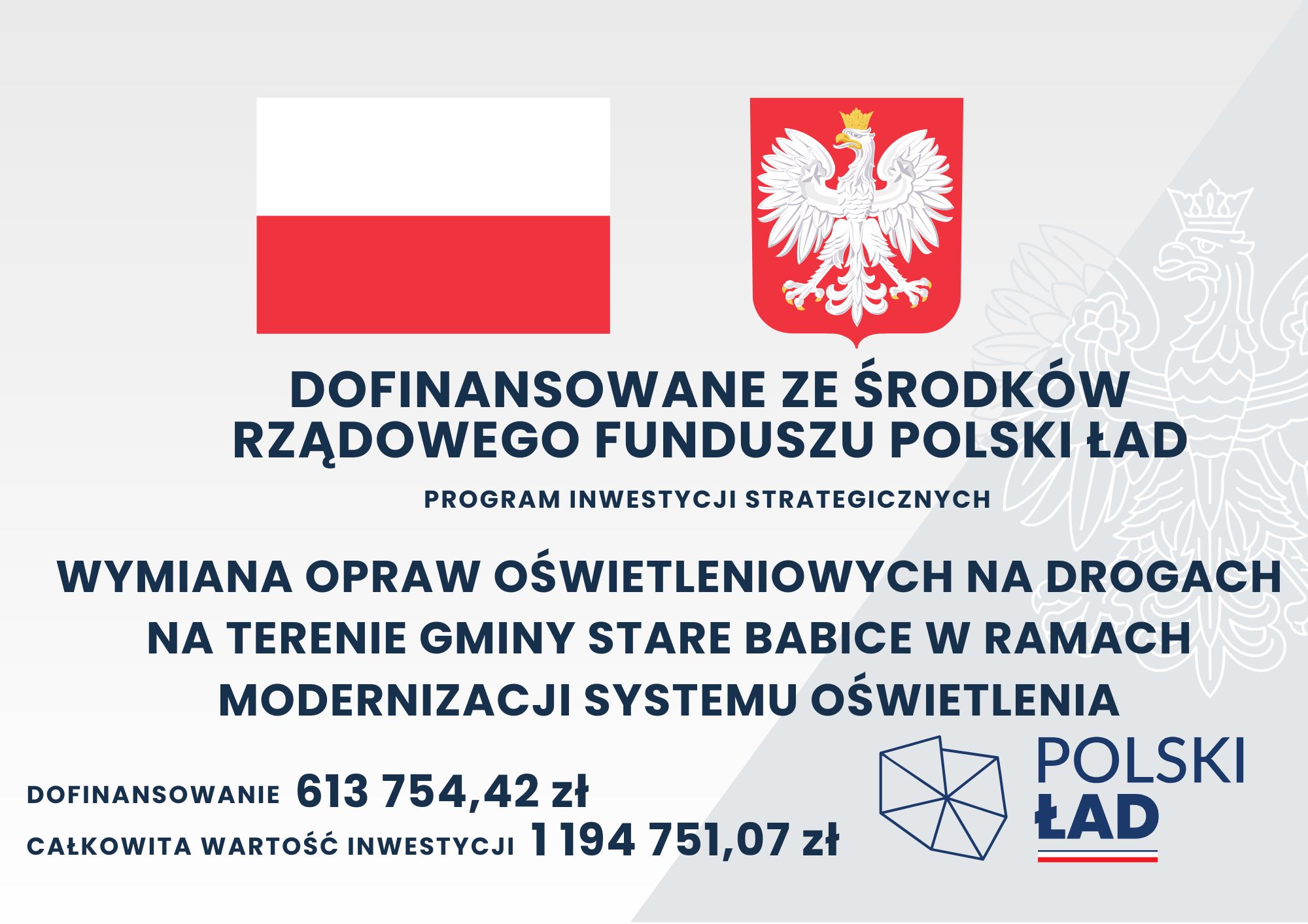 Informujemy, że pierwszy etap prac związanych z wymianą opraw oświetleniowych na drogach Gminy Stare Babice, realizowany w ramach modernizacji systemu oświetlenia, został rozszerzony o kolejne lokalizacje. W najbliższym czasie prace modernizacyjne prowadzone będą również na ulicach: Dolna w Babicach Nowych, Tadeusza Kościuszki w Bliznem Jasińskiego, Karabeli w Lipkowie i Wodnisko w Borzęcinie Dużym.