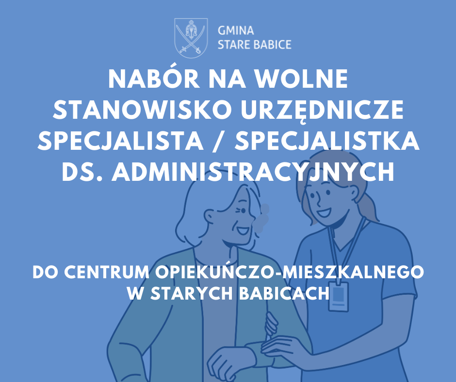 NABÓR NA WOLNE STANOWISKO URZĘDNICZE SPECJALISTA / SPECJALISTKA DS. ADMINISTRACYJNYCH w Centrum Opiekuńczo-Mieszkalnym w Starych Babicach