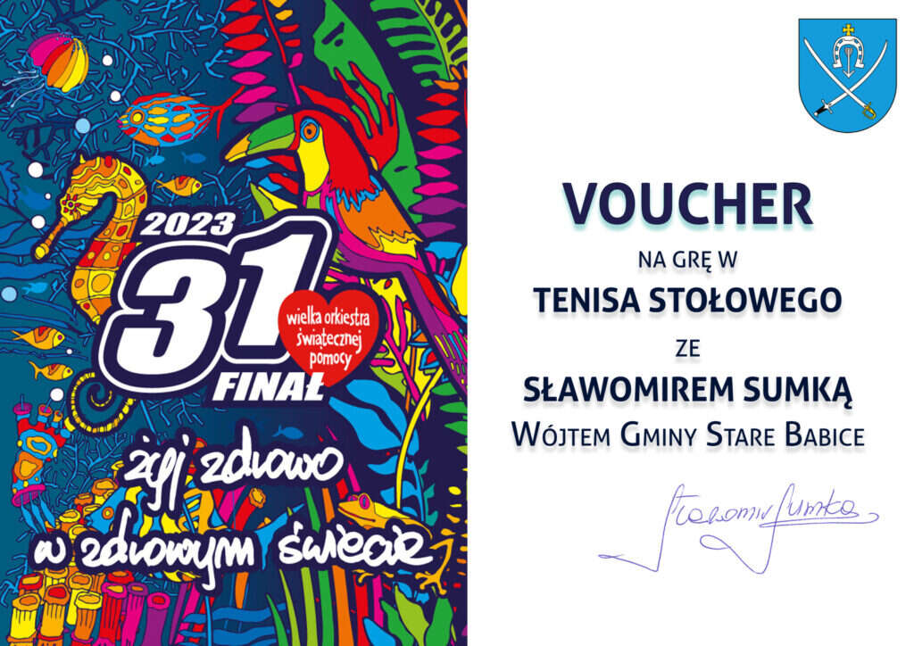 Uprzejmie informujemy, że do 12 lutego 2023 roku można licytować voucher Wójta Gminy Stare Babice w ramach 31. Finału Wielkiej Orkiestry Świątecznej Pomocy.