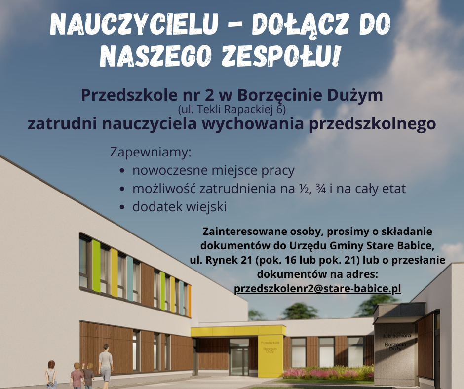 Nauczycielu – dołącz do zespołu przedszkola w Borzęcinie Dużym!