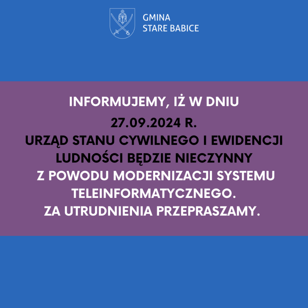 informujemy, iż w dniu 27.09.2024r. – USCiEL będzie nieczynny z powodu Modernizacji Systemu Teleinformatycznego.