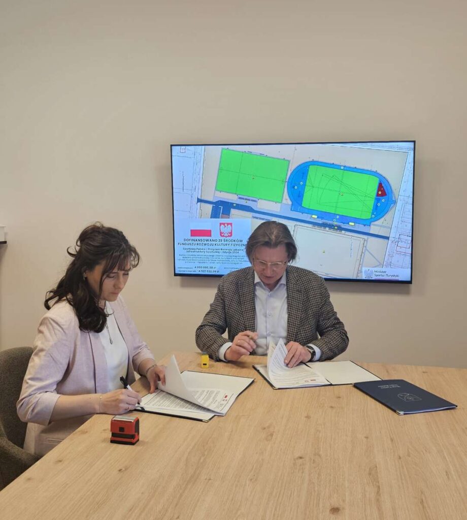 📆 17 kwietnia 2026 r. Wójt Gminy Stare Babice Sławomir Sumka podpisał umowę z firmą EVERSPORT Sp. z o.o. na budowę areny lekkoatletycznej wraz z infrastrukturą towarzyszącą na terenie kompleksu sportowego przy ul. Południowej 2b w miejscowości Zielonki-Parcela.