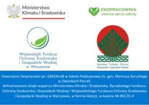 Pracownia GREENLAB to sala przyrodnicza, w której, przy pomocy doświadczeń, obserwacji i nowoczesnych pomocy dydaktycznych, realizowana jest podstawa programowa kształcenia ogólnego dla szkoły podstawowej z przedmiotów przyrodniczych oraz zajęcia rozszerzające dla entuzjastów wiedzy przyrodniczej, uczniów przejawiających zainteresowania i uzdolnienia przyrodnicze, a także zajęcia przygotowujące do konkursów i olimpiad. Nowo powstała Ekopracownia pozwoli uczniom rozwijać zainteresowania z zakresu ekologii i ochrony środowiska, a zajęcia edukacyjne realizowane będą w przyjaznej przestrzeni. Dzięki zakupionym pomocom edukacyjnym lekcje przyrody, biologii i geografii staną się ciekawsze, a różnorodne zestawy dydaktyczne umożliwią uczniom samodzielne wykonywanie doświadczeń i wpłyną na kształtowanie postaw przyjaznych środowisku.