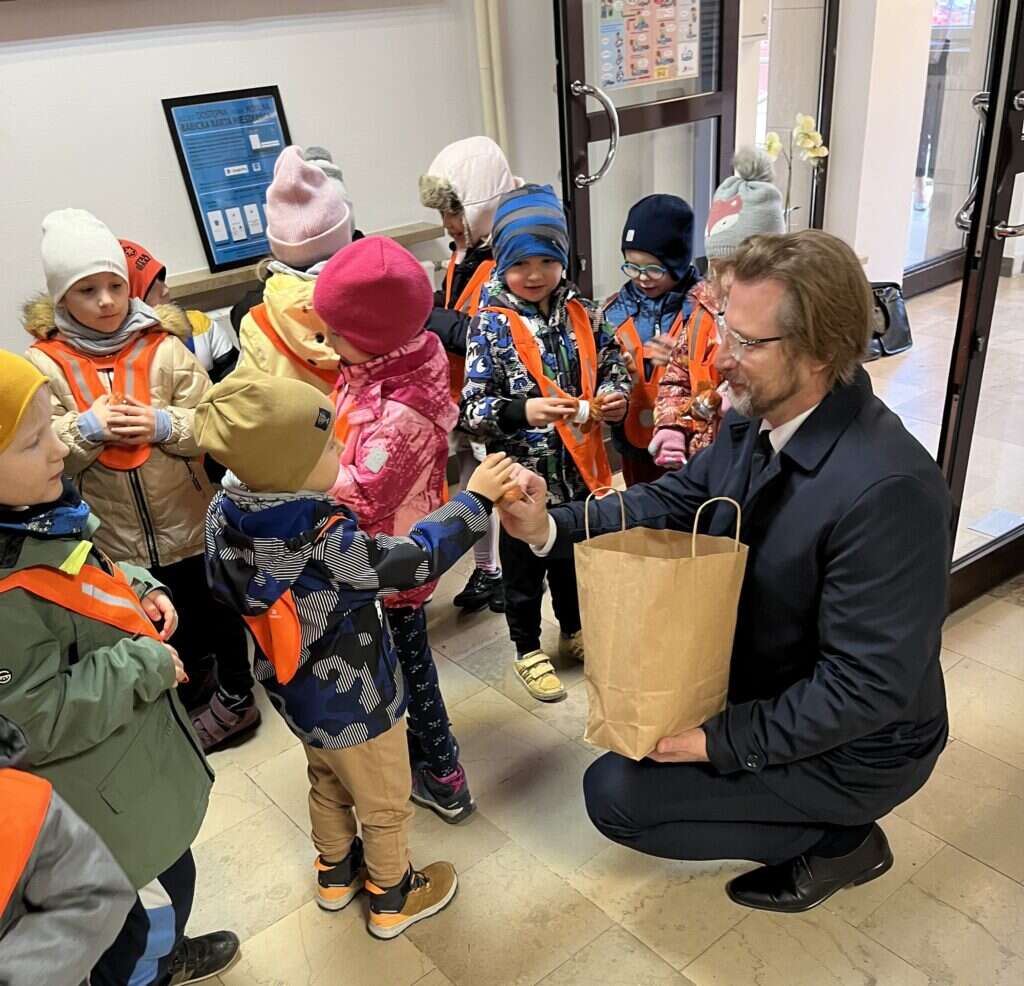 Wójt Gminy Sławomir Sumka powitał kolejną grupę przedszkolaków ze Starych Babic. Dzieci odwiedziły referaty, aby dowiedzieć się, jak wygląda praca w urzędzie. Wycieczka wszystkim dzieciom bardzo się spodobała. Nikt też nie wyszedł z pustymi rączkami 😉