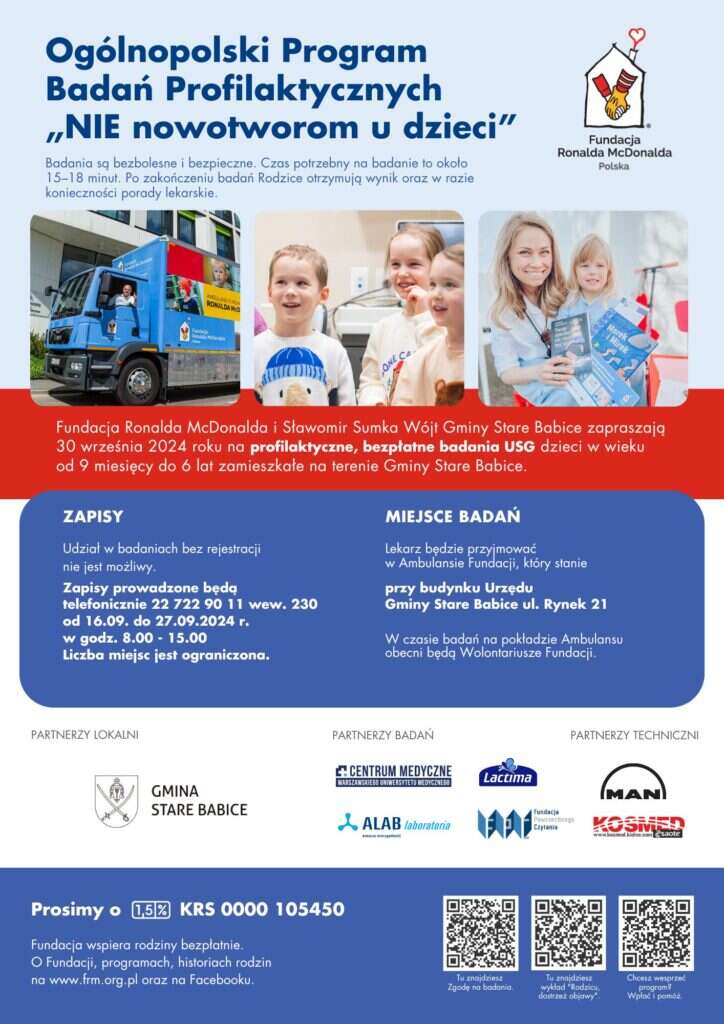 Fundacja Ronalda McDonalda realizuje program „NIE nowotworom u dzieci” od 2005 roku. Główny cel programu to wczesne wykrywanie zmian nowotworowych. Mobilny Ambulans Fundacji co roku przemierza tysiące kilometrów, odwiedzając miejscowości w całej Polsce.