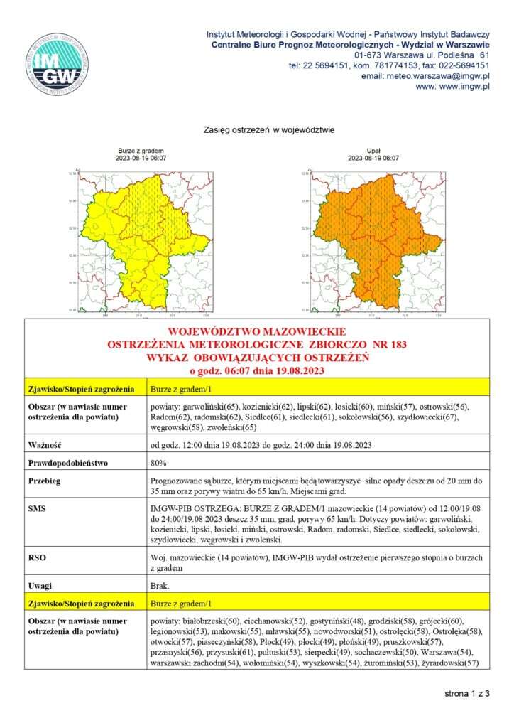 Instytut Meteorologii i Gospodarki Wodnej wydał ostrzeżenie meteorologiczne nr 182 – burze i upał.