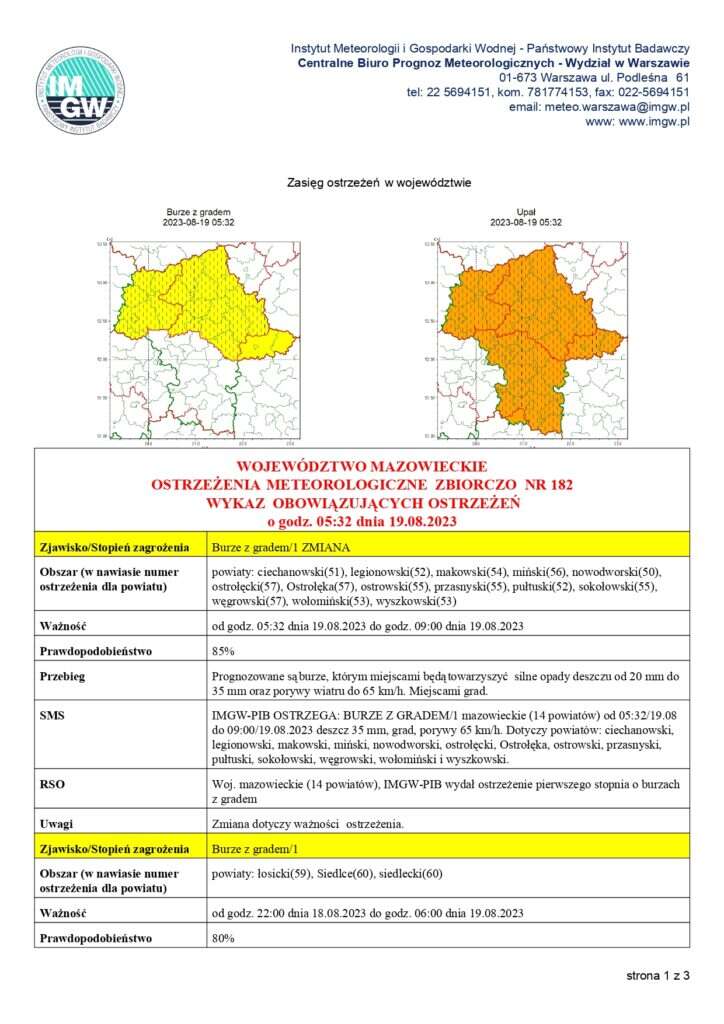 Instytut Meteorologii i Gospodarki Wodnej wydał ostrzeżenie meteorologiczne nr 183 – burze z gradem i upały.