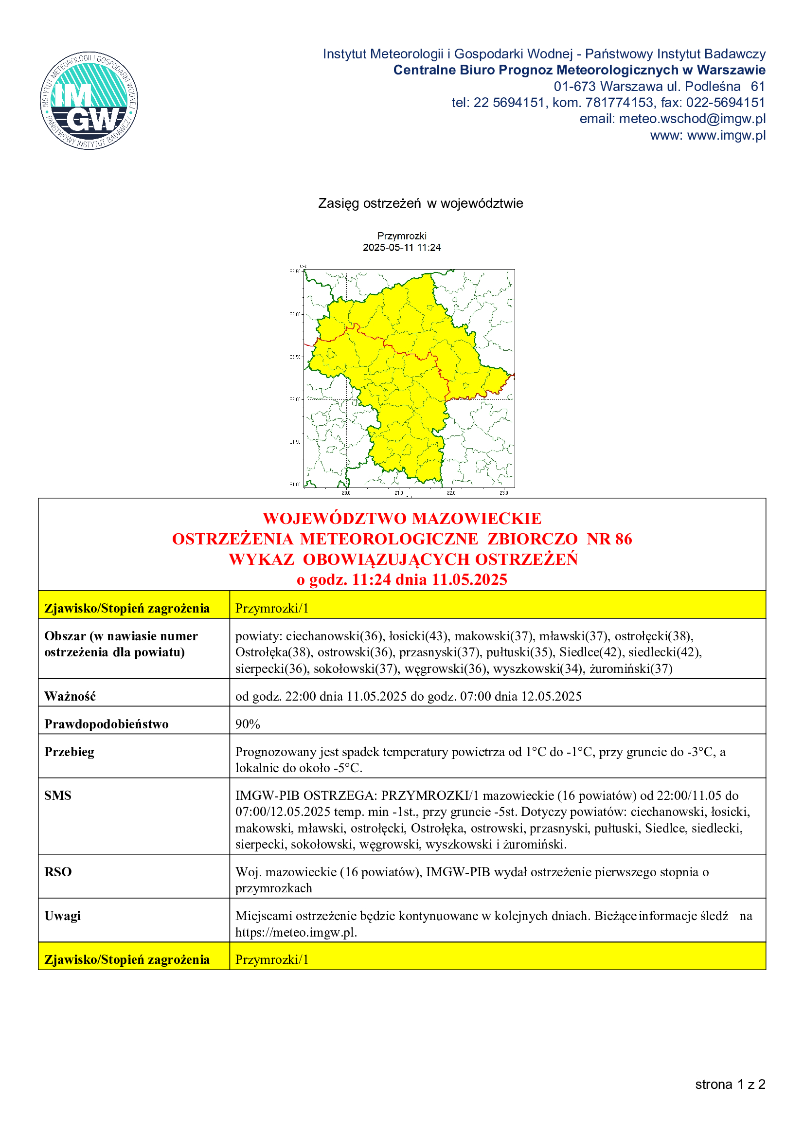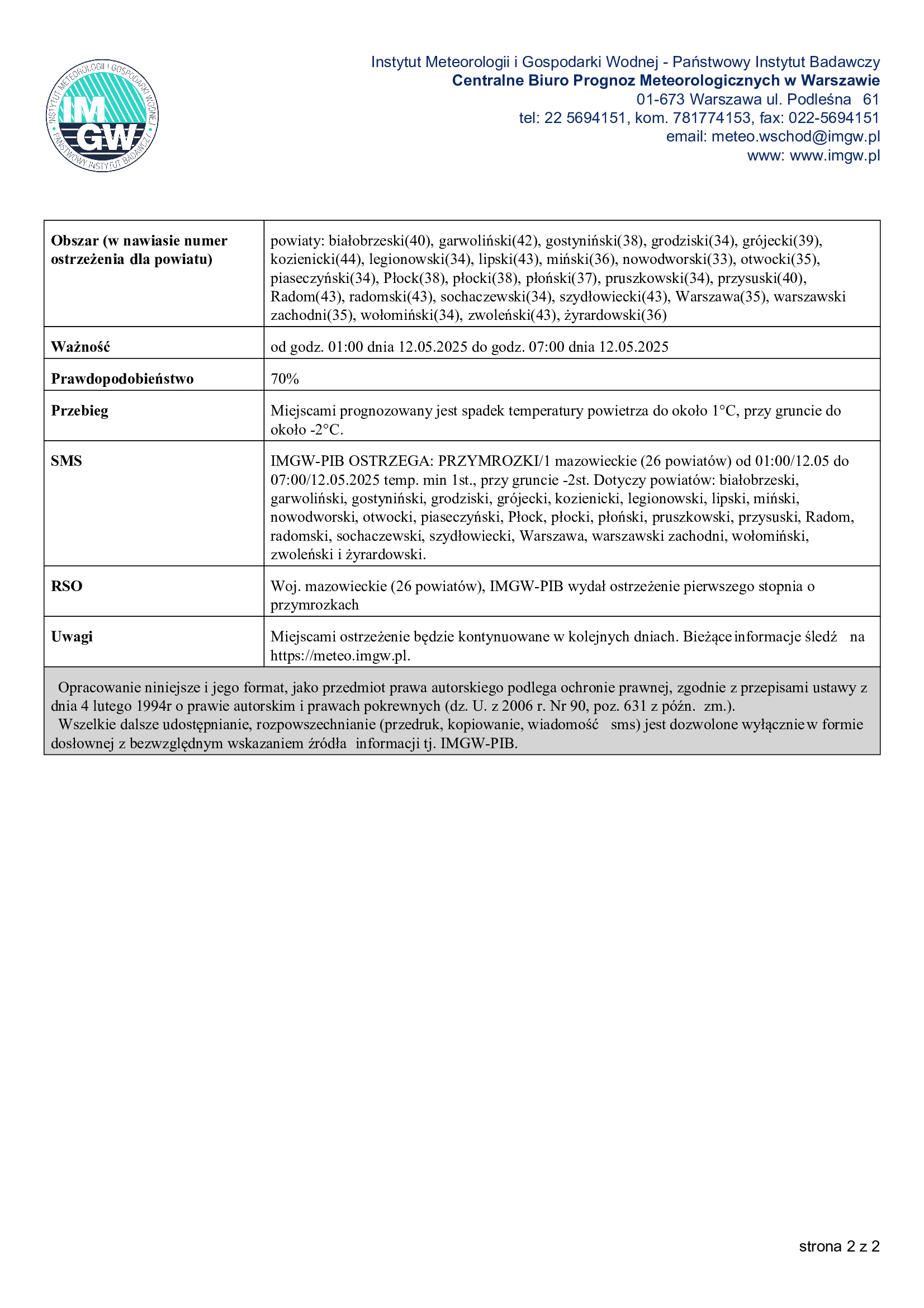 🕐 Ważność: od godz. 01:00 dnia 12.05.2025 do godz. 07:00 dnia 12.05.2025