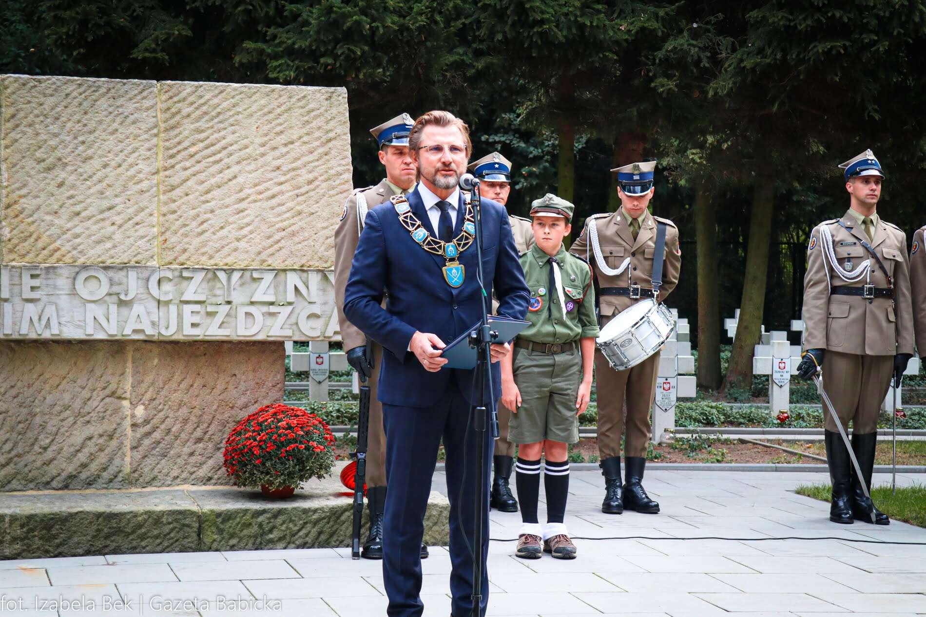 Wójt Gminy Stare Babice Sławomir Sumka podkreślił sukces współpracy w sprawie przywrócenia krzyża na babicki cmentarz, dziękując Panu Stanisławowi Fijałkowskiemu i Panu Grzegorzowi Grzybowskiemu, którzy przez kilkadziesiąt lat wnioskowali do ówczesnych władz samorządowych o przywrócenie tego symbolu, Radzie Gminy obecnej kadencji, służbom Wojewódzkiego Konserwatora Zabytków, a przede wszystkim Wojewodzie Mazowieckiemu Panu Tobiaszowi Bocheńskiemu za osobiste zaangażowanie i natychmiastową odpowiedź i reakcje, dzięki którym krzyż wrócił na cmentarz wojenny. Wójt Gminy Stare Babice zaznaczył również, że to szczególny rok dla mieszkańców ziemi babickiej, bowiem jest to również setna rocznica uruchomienia Transatlantyckiej Radiotelegraficznej Stacji nadawczej Babice, skąd nadawała depesze na cały świat – tu odbył się pierwszy bezpośredni radiotelegraficzny telegram w dziejach Polski. 17 listopada 1923 roku, depeszę do 30. Prezydenta USA Calvina Coolidge’a wysłał Prezydent RP Stanisław Wojciechowski.