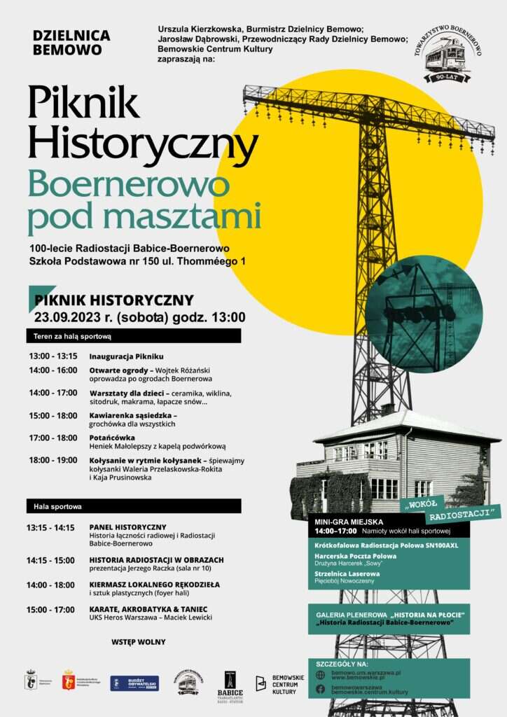 W tym roku świętujemy 100-lecie Radiostacji Babice-Boernerowo. Z tej okazji zapraszamy na piknik historyczny „Boernerowo pod masztami”, który odbędzie się w sobotę, 23 września o godz. 13.00 na terenie SP nr 150 przy ul. Thommeego 1.