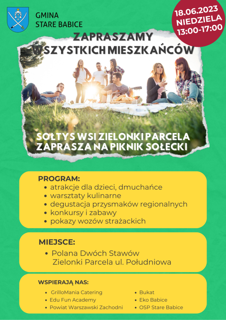 Sołtys wsi Zielonki – Parcela ma przyjemność zaprosić wszystkich Mieszkańców na Piknik Sołecki, który odbędzie się 18 czerwca 2023 r. (niedziela)!