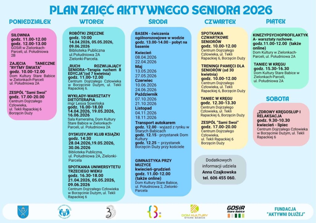 Z przyjemnością prezentujemy zaktualizowany Plan zajęć Aktywnego Seniora na 2026 rok.
