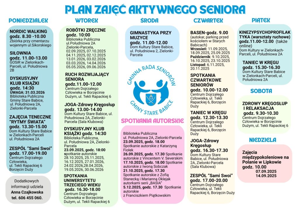 📋️ przedstawiamy Plan Zajęć Aktywnego Seniora na nowy sezon i serdecznie zapraszamy do czynnego udziału w proponowanych aktywnościach.