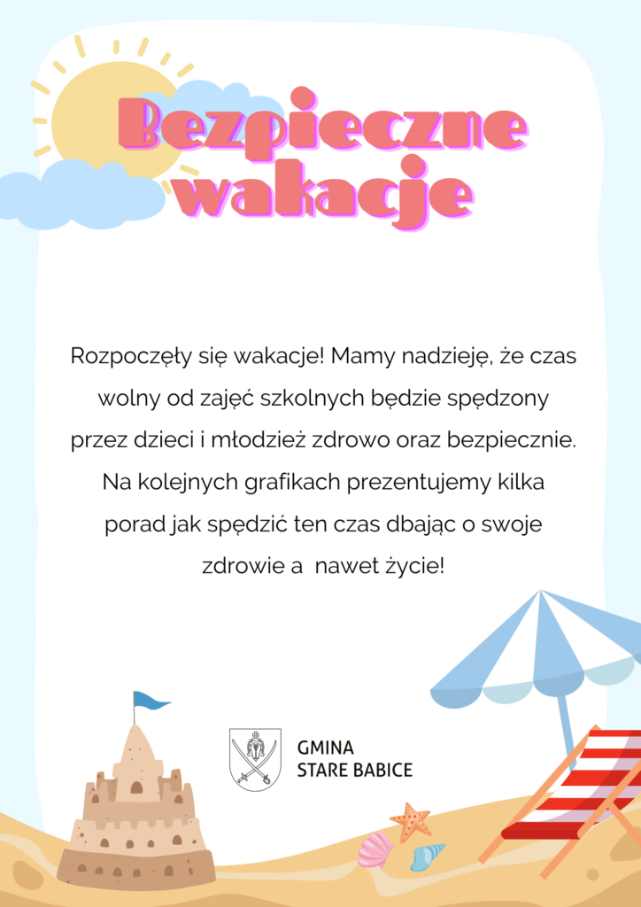 Wakacje to czas, w którym możecie odpocząć, cieszyć się wolnością i spędzać dni w swoim ulubionym tempie. Jednak w tym beztroskim okresie letniego wypoczynku, chcielibyśmy Wam przypomnieć o kilku bardzo ważnych zasadach dotyczących bezpieczeństwa.