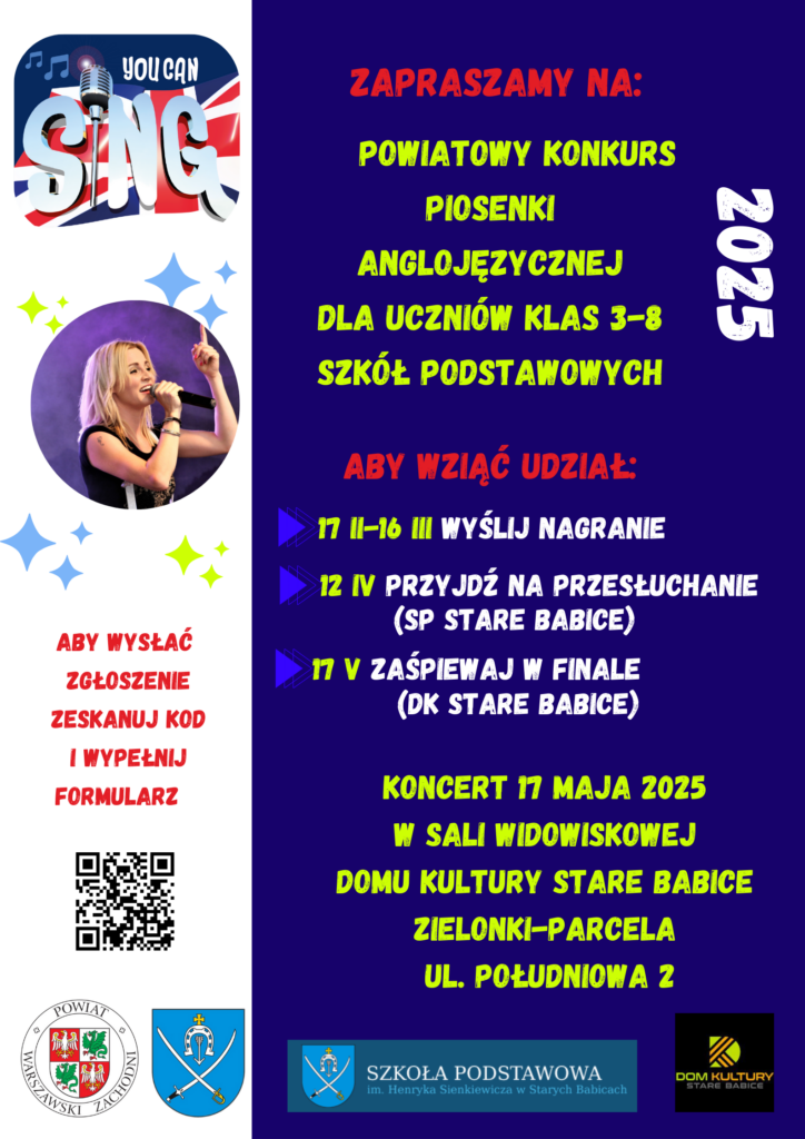 🟢Koncert finałowy odbędzie się 17 maja 2025 roku w Sali Widowiskowej Domu Kultury Stare Babice.
