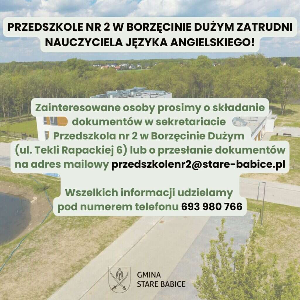 Przedszkole nr 2 w Borzęcinie Dużym zatrudni nauczyciela języka angielskiego!