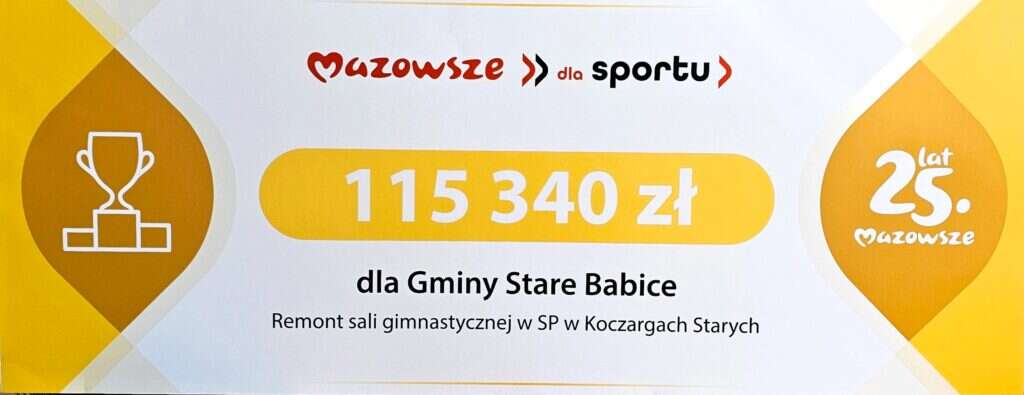 25 kwietnia 2024 r. w hali widowiskowo- sportowej w Grodzisku Mazowieckim, Pan Sławomir Sumka Wójt Gminy Stare Babice oraz Pani Mariola Sarzyńska Skarbnik Gminy Stare Babice, podpisali umowę o udzielenie pomocy finansowej z budżetu Województwa Mazowieckiego w ramach Mazowieckiego Instrumentu Wsparcia Infrastruktury Sportowej „Mazowsze dla sportu” – edycja 2024, w wysokości 115 340 zł.