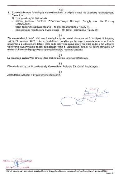 przedstawiamy zarządzenie wójta w sprawie rozstrzygnięcia otwartego konkursu ofert na realizację zadań publicznych Gminy Stare Babice z zakresu edukacji społecznej i wychowania w 2020 r.