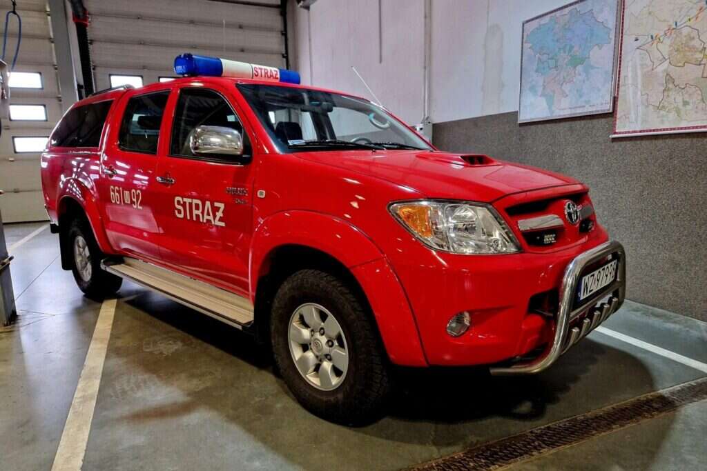 odbyło się uroczyste przekazanie samochodu pożarniczego Toyoty Hilux dla