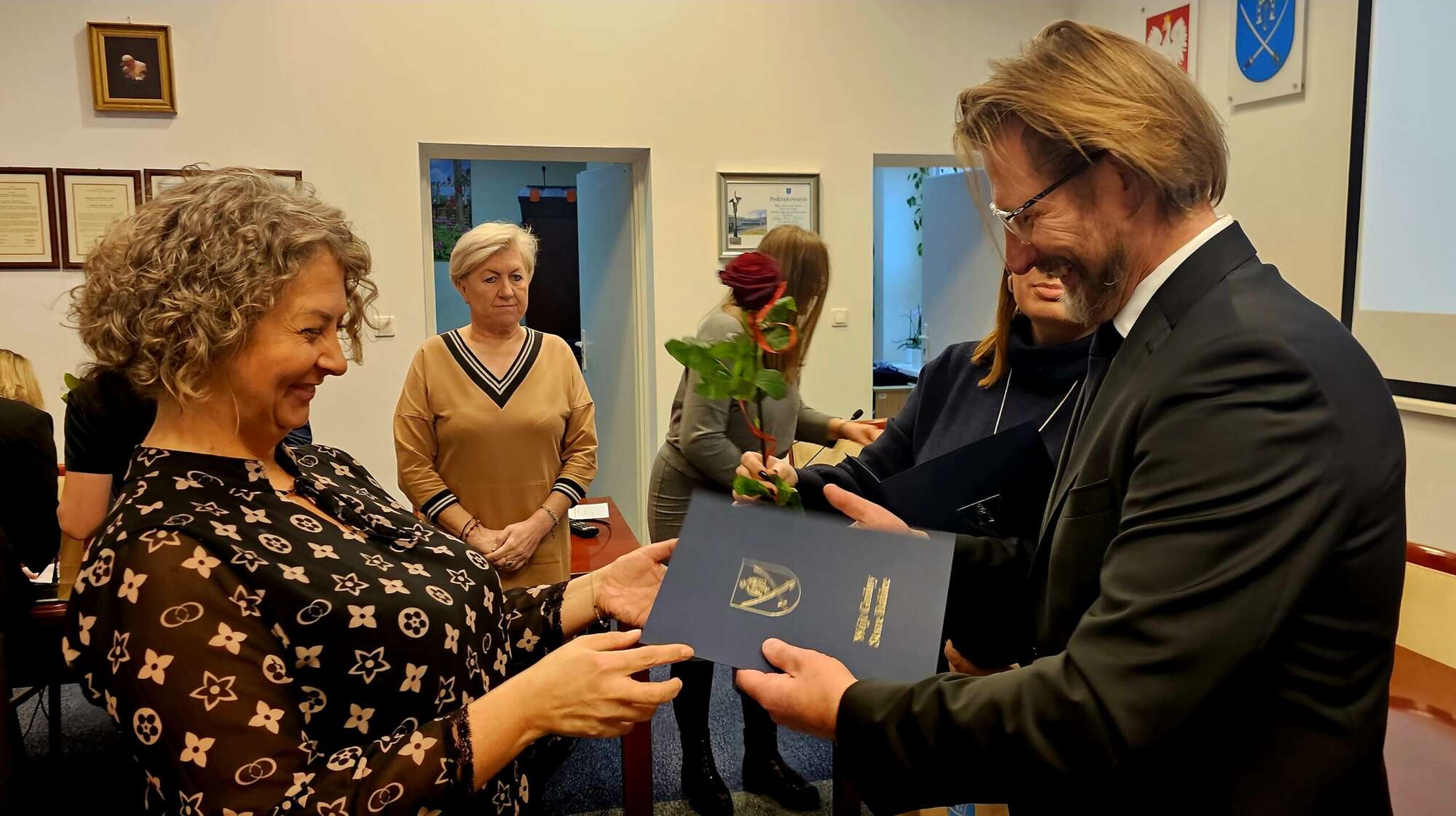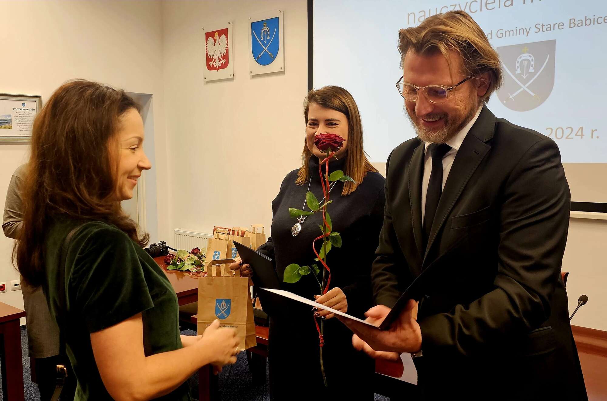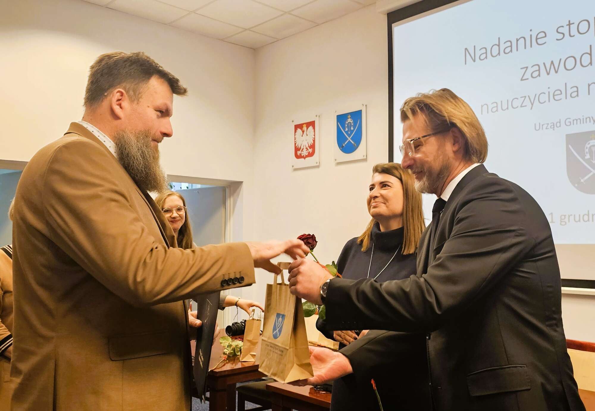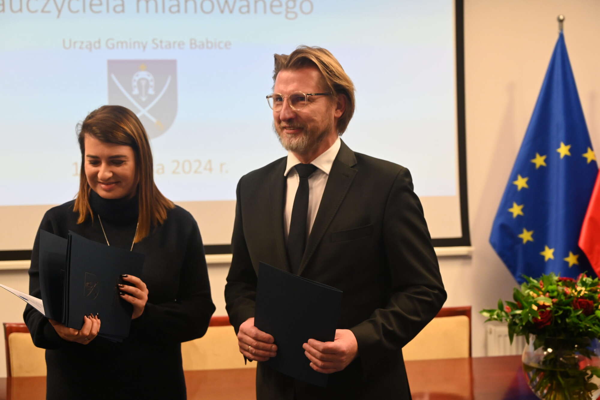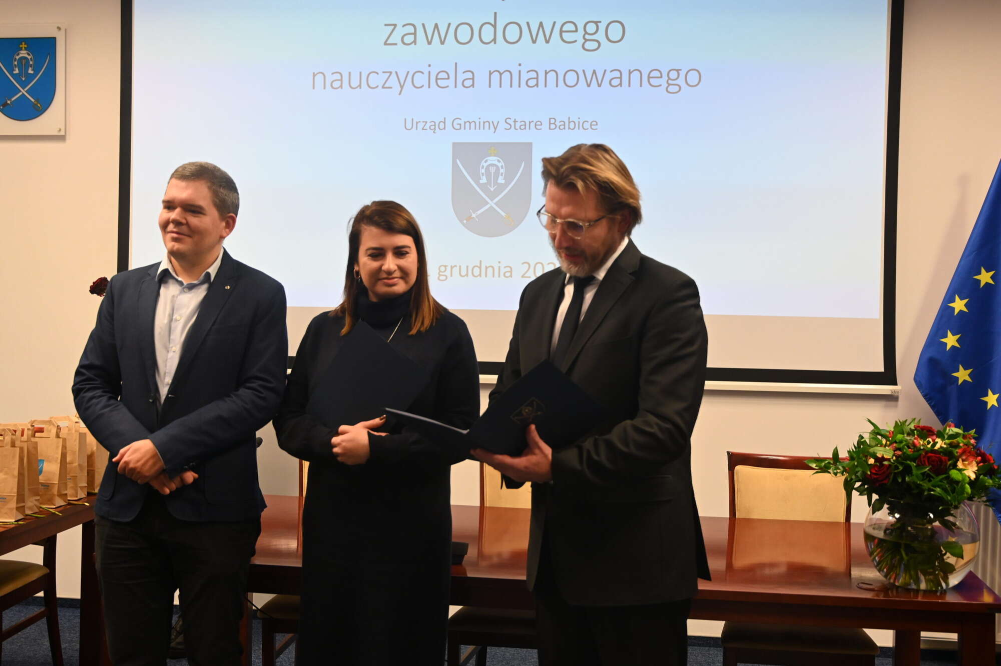 Składając gratulacje nowo mianowanym nauczycielom Wójt Gminy Stare Babice życzył satysfakcji
