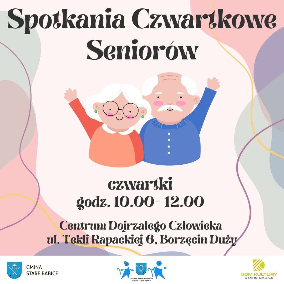 Serdecznie zapraszamy Seniorów z gminy Stare Babice na najbliższe czwartkowe spotkania, które odbędą się w Centrum Dojrzałego Człowieka w Borzęcinie Dużym.