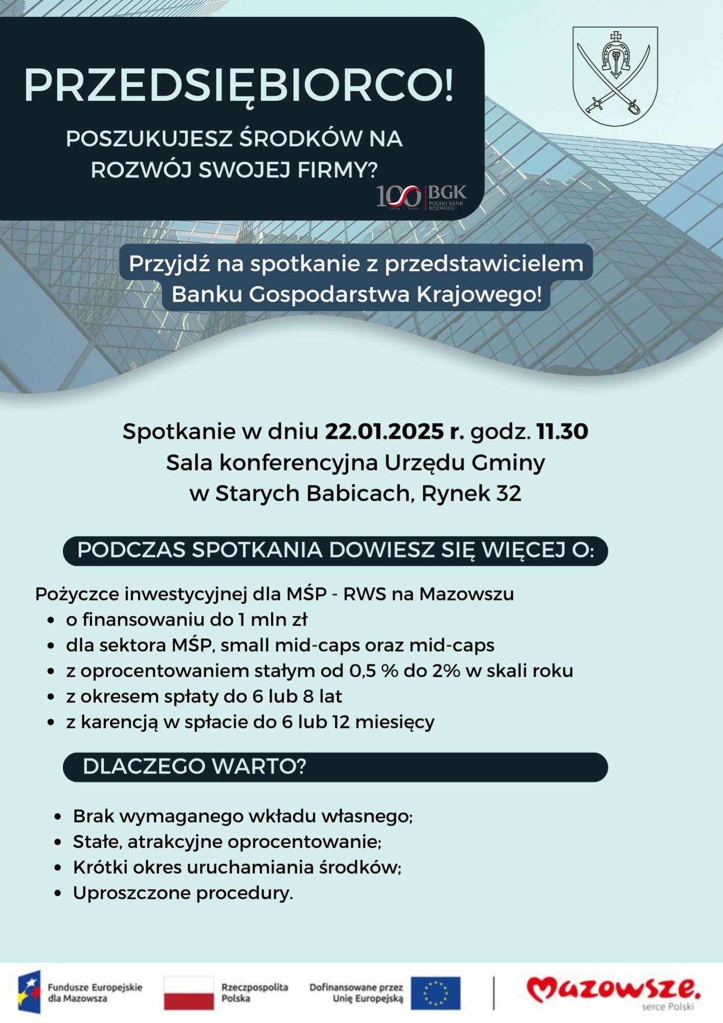 👉Zapraszamy na spotkanie informacyjne Banku Gospodarstwa Krajowego dotyczące pożyczki inwestycyjnej dla MŚP – RWS na Mazowszu!