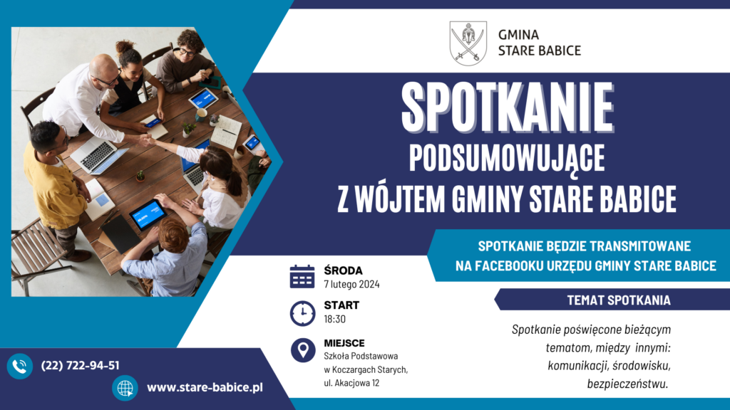 Drodzy Mieszkańcy Gminy Stare Babice! Przypominamy o nadchodzącym spotkaniu podsumowującym z Wójtem Gminy Sławomirem Sumką.