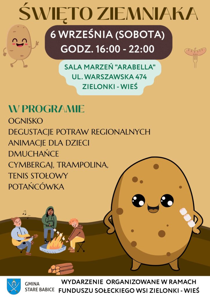 Sołtys wsi Zielonki-Wieś serdecznie zaprasza wszystkich – dzieci, młodzież, dorosłych i seniorów – na wyjątkowe wydarzenie pn. „Święto Ziemniaka” , które odbędzie się: