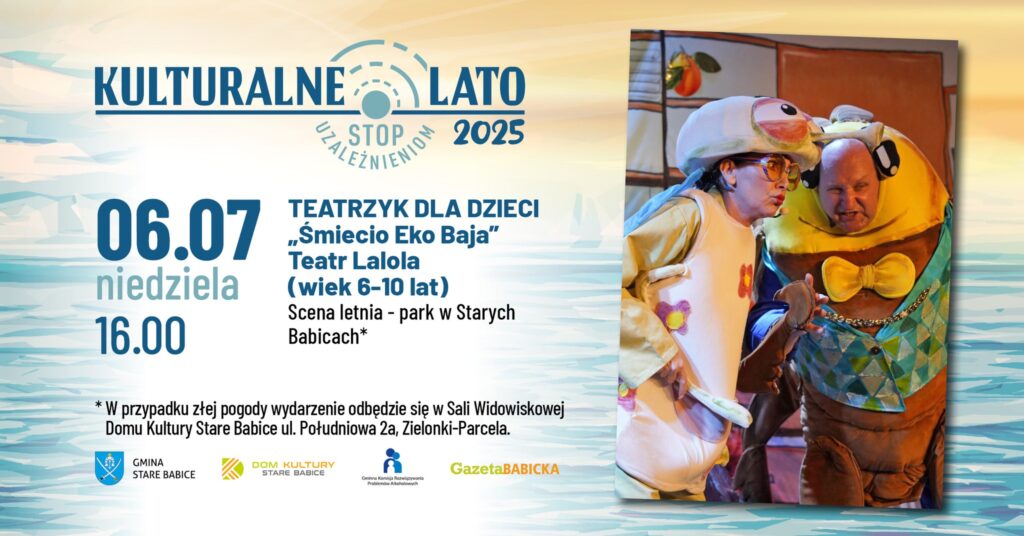 W przypadku złych warunków atmosferycznych teatrzyk zostanie przeniesiony do Sali Widowiskowej Domu Kultury Stare Babice w Zielonkach – Parceli przy ul. Południowej 2a.
